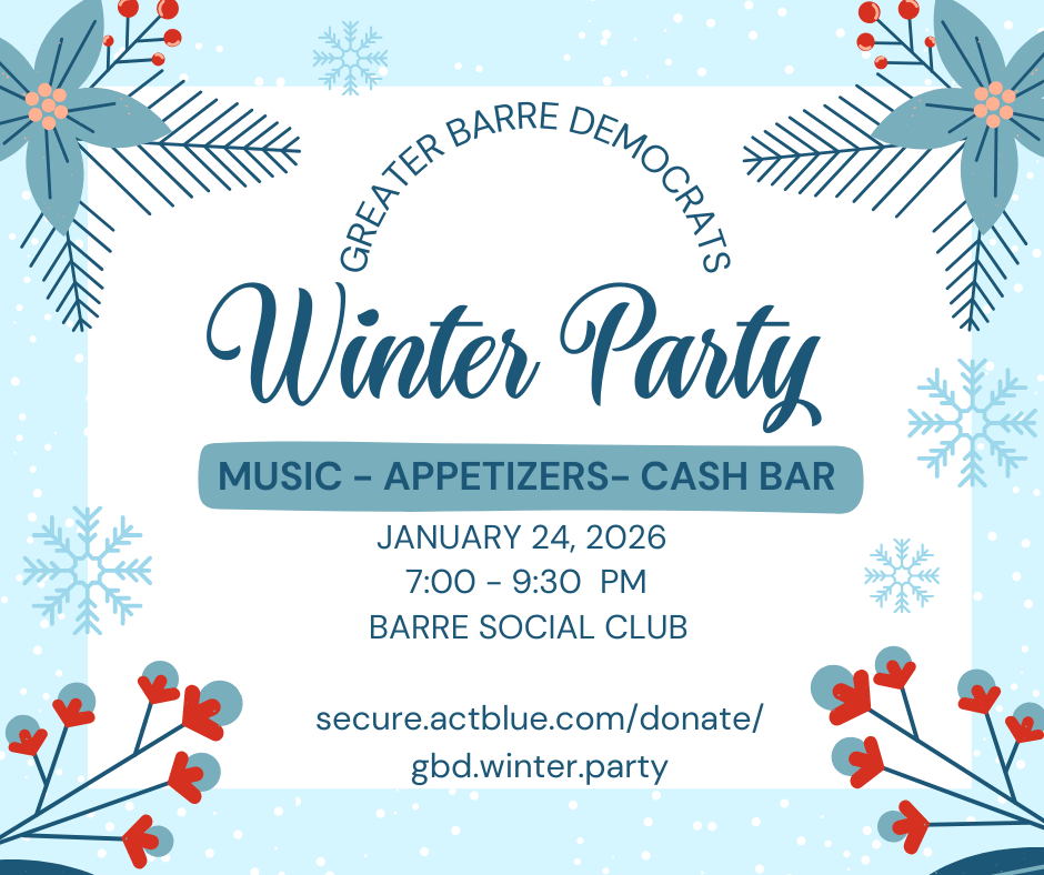 Join our Joy is Resistance Winter Party: January 24, 7:00-9:30 at the Barre Social Club. Everyone is welcome–sign-up here!